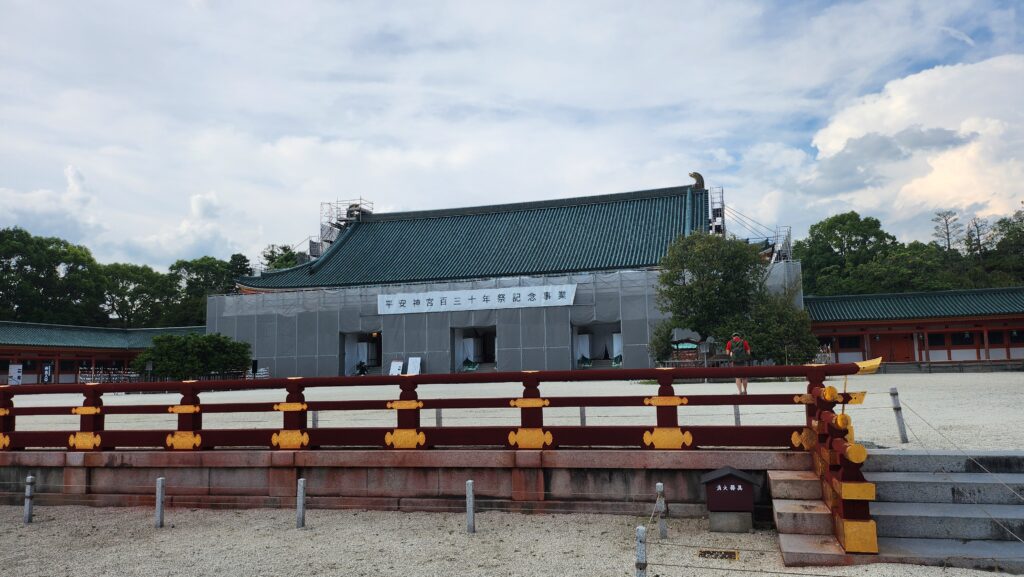 なんと大極殿が創建130周年記念事業とかで改修工事中だったのです。(2026年現在は工事終了しております!)