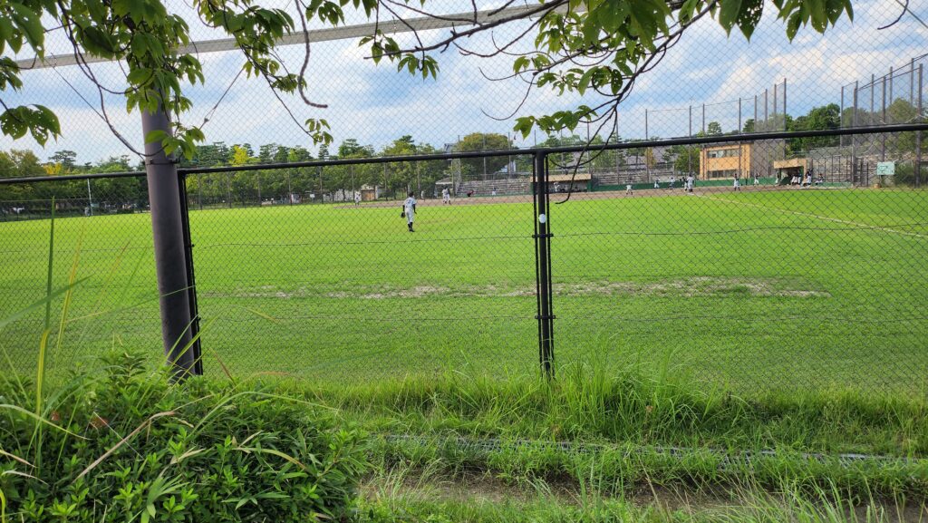 久しく来ていなかった岡崎の野球場にふらっと足を伸ばすと大学生なのか草野球なのか、試合をやっていました。